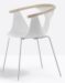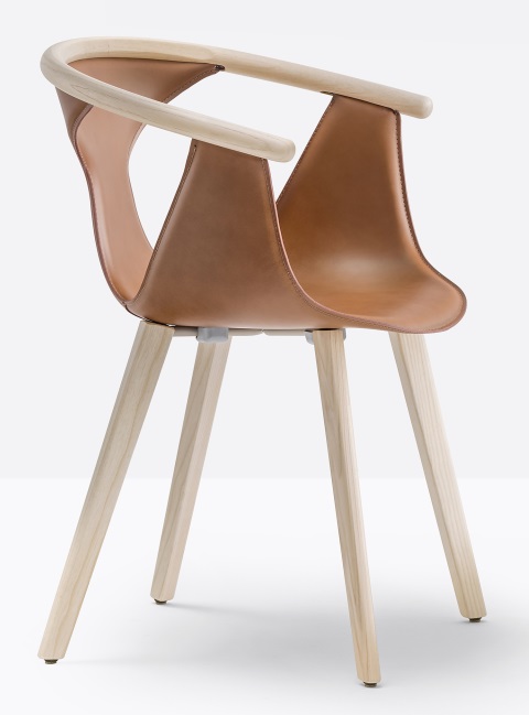 • Siedzisko - polipropylen (5 kolorów) lub tapicerowane - dostępne jest kilkadziesiąt wzorów tapicerki. Góra oparcia - drewno jesionowe dostępne w kolorach jak stelaż.