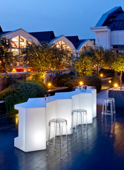 Lada barowa modułowa, może służyć również jako wysoki bufet przeznaczone do użytku wewnętrznego lub zewnętrznego. Wykonana z polietylenu – z podświetleniem lub bez podświetlenia. Blat podawczy / roboczy wykonany z metakrylu, półki wewnętrzne – stal lakierowana proszkowo na kolor biały.