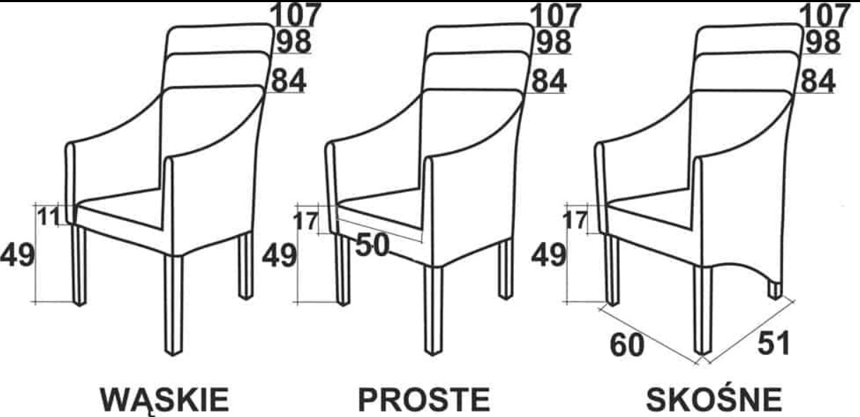 • Siedzisko / Oparcie - tapicerowane - dostępne jest kilkaset wzorów tapicerek. Dostępne są wersje z siedziskiem wąskim, prostym, skośnym.