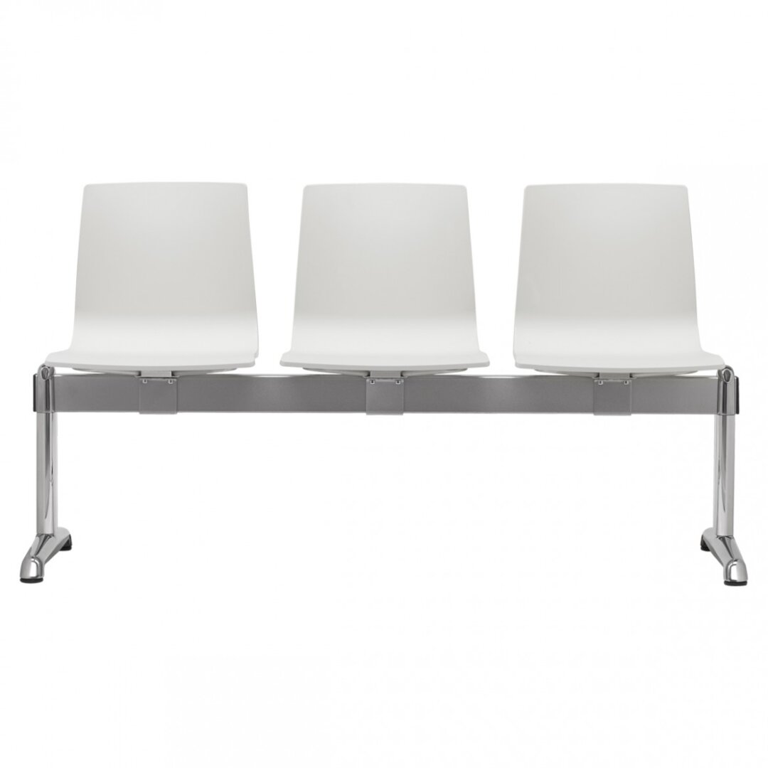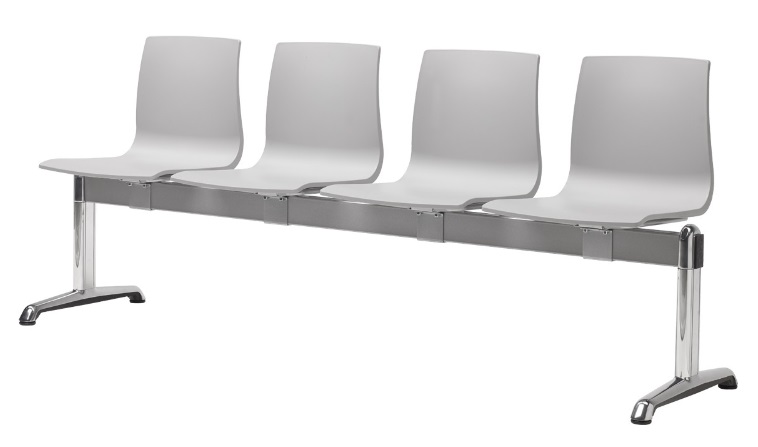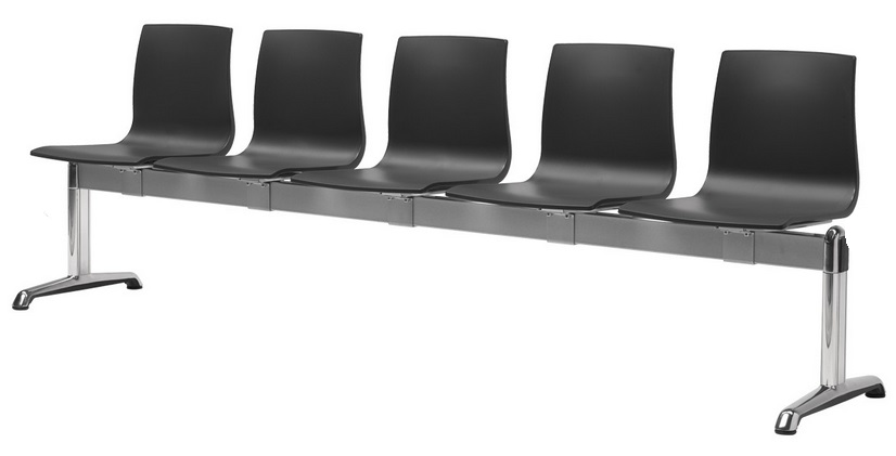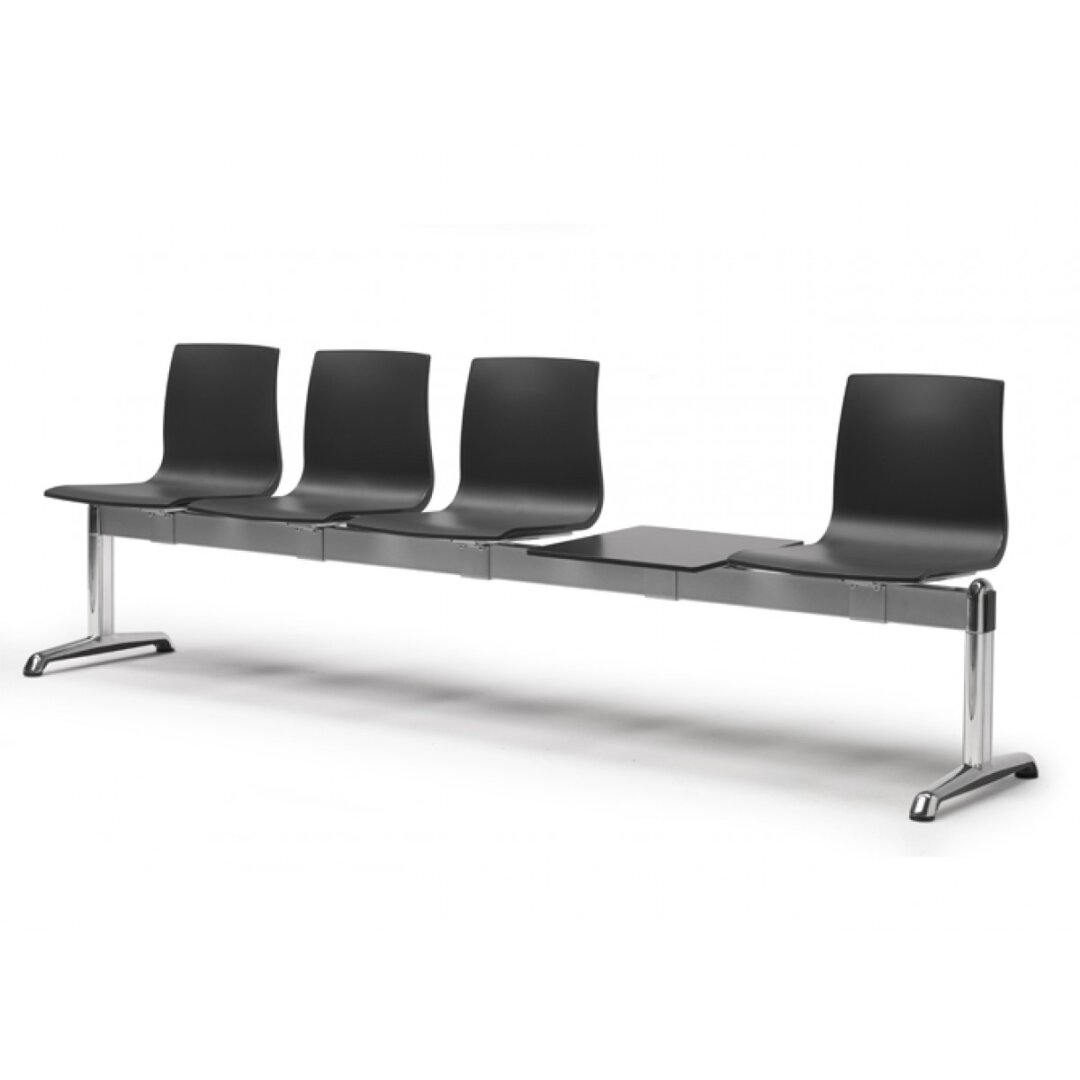 • Siedzisko / Oparcie - technopolimer dostępny w trzech kolorach. Półka z laminatu HPL w kolorze czarnym. Z atestem trudnopalności.
