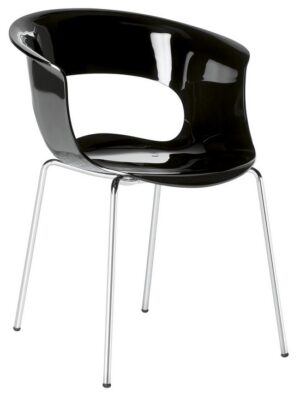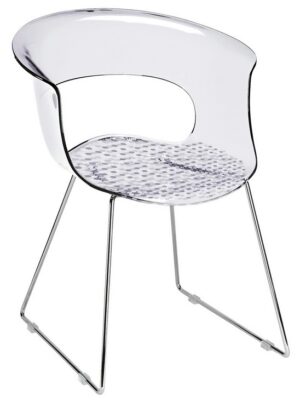• Siedzisko / Oparcie - poliwęglan dostępny w 2 kolorach: biały lity, bezbarwny przezroczysty. Opcjonalnie dostępna jest tapicerowana nakładka na siedzisko.