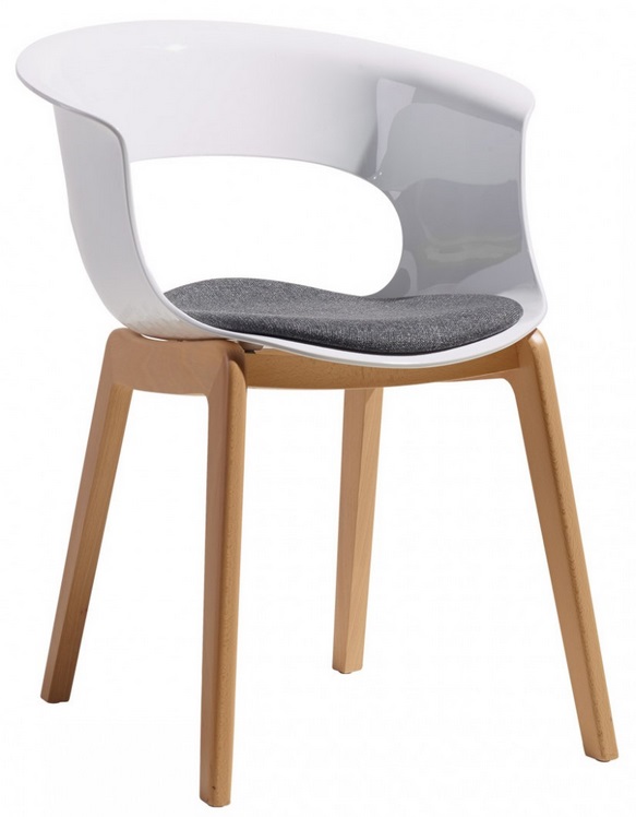 • Siedzisko / Oparcie - poliwęglan dostępny w 2 kolorach: biały lity, bezbarwny przezroczysty. Opcjonalnie dostępna jest tapicerowana nakładka na siedzisko.
