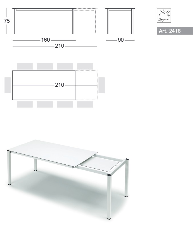 > Wymiar blatu = 160-210x90 cm