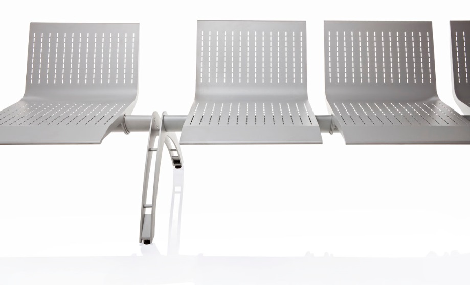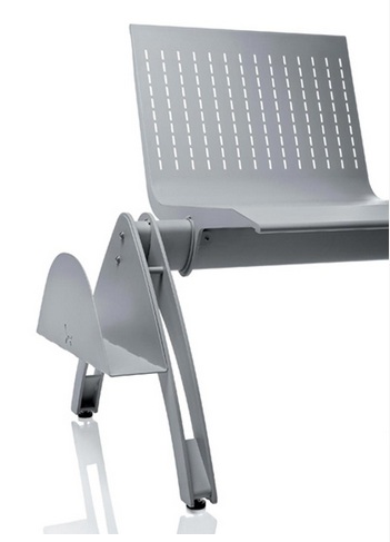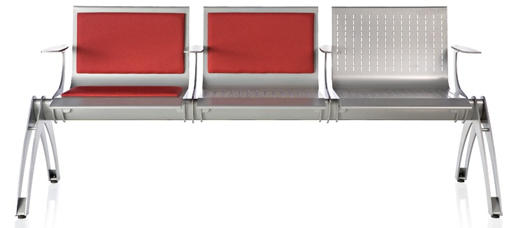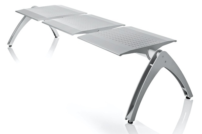 Ławka do poczekalni wolnostojąca lub montowana do podłogi. Dostępna z dwoma, trzema lub czterema siedziskami ze stali galwanizowanej, z oparciem lub bez.