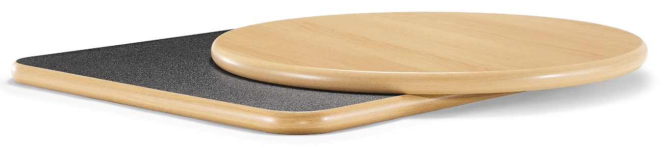 Blaty laminowane z krawędzią PVC o grubości 20mm i 27mm produkowane na rdzeniu z płyty wiórowej. Powierzchnia robocza wykończona laminatem hpl(podstawowa kolorystyka zawiera 70 kolorów). Krawędzie – obrzeże pvc płaskie lub zaokrąglone. Doskonałe do miejsc narażonych na intensywne użytkowanie – bary, foodcourty, restauracje, puby.