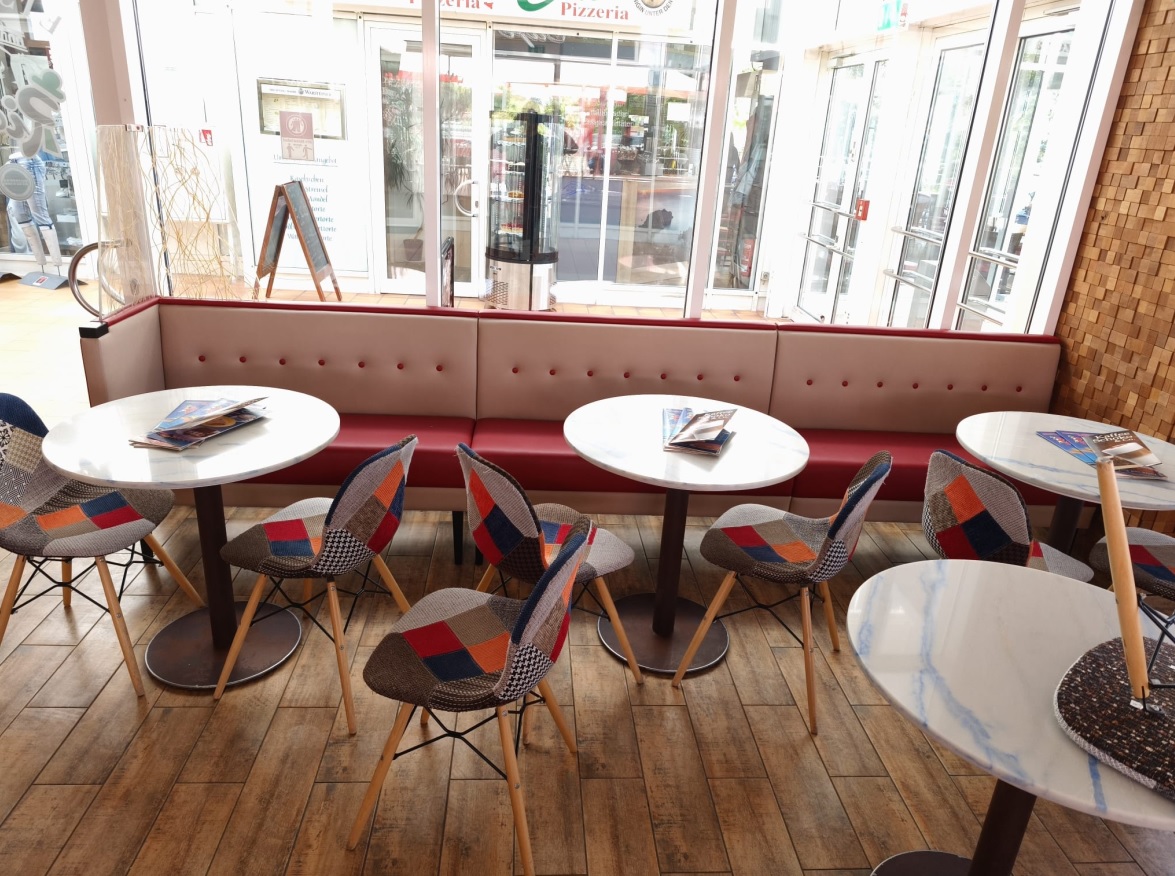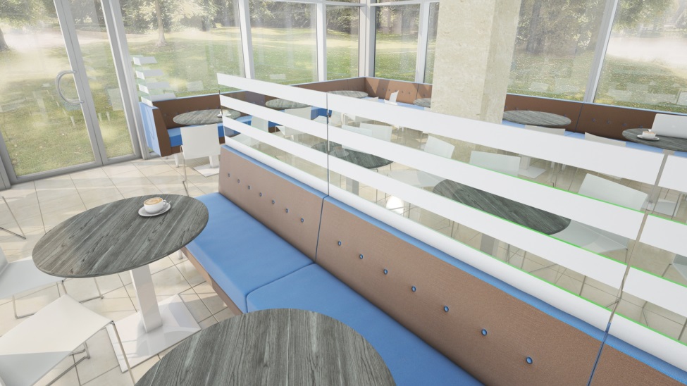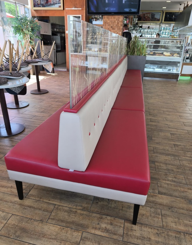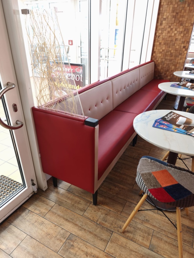 W styczniu 2025r. powrócił do nas klient, który w 2016r. zamówił komplet sof do wyposażenia kawiarni. Umówiliśmy się na kompleksową usługę: od pomiaru, poprzez projekt i wizualizację do montażu.