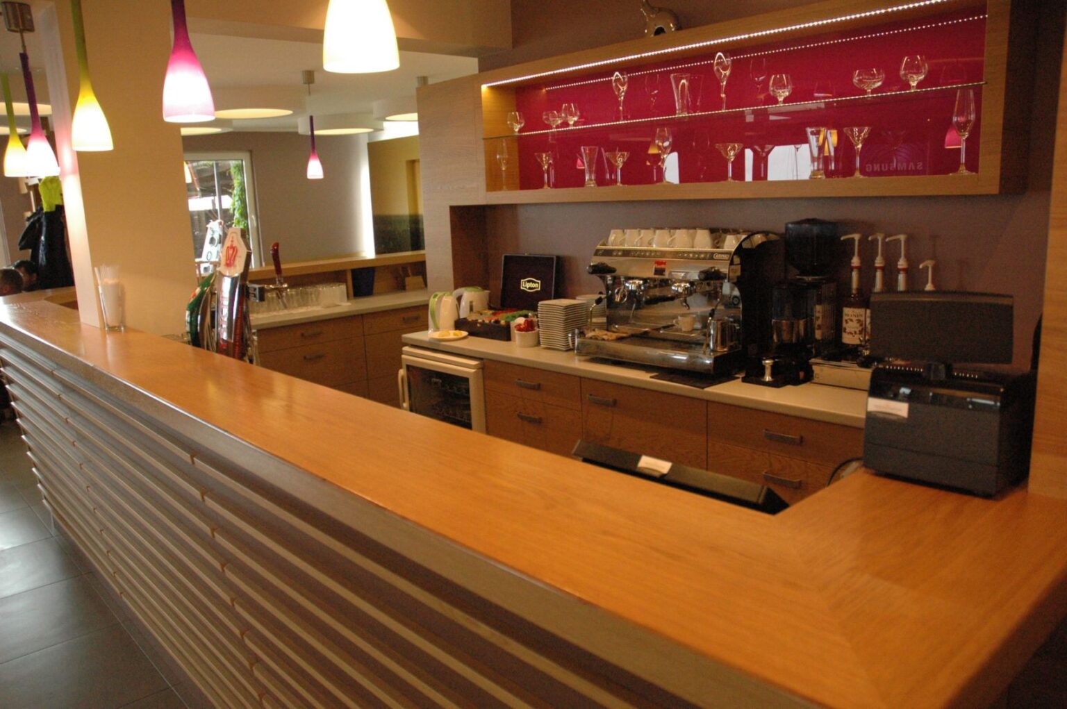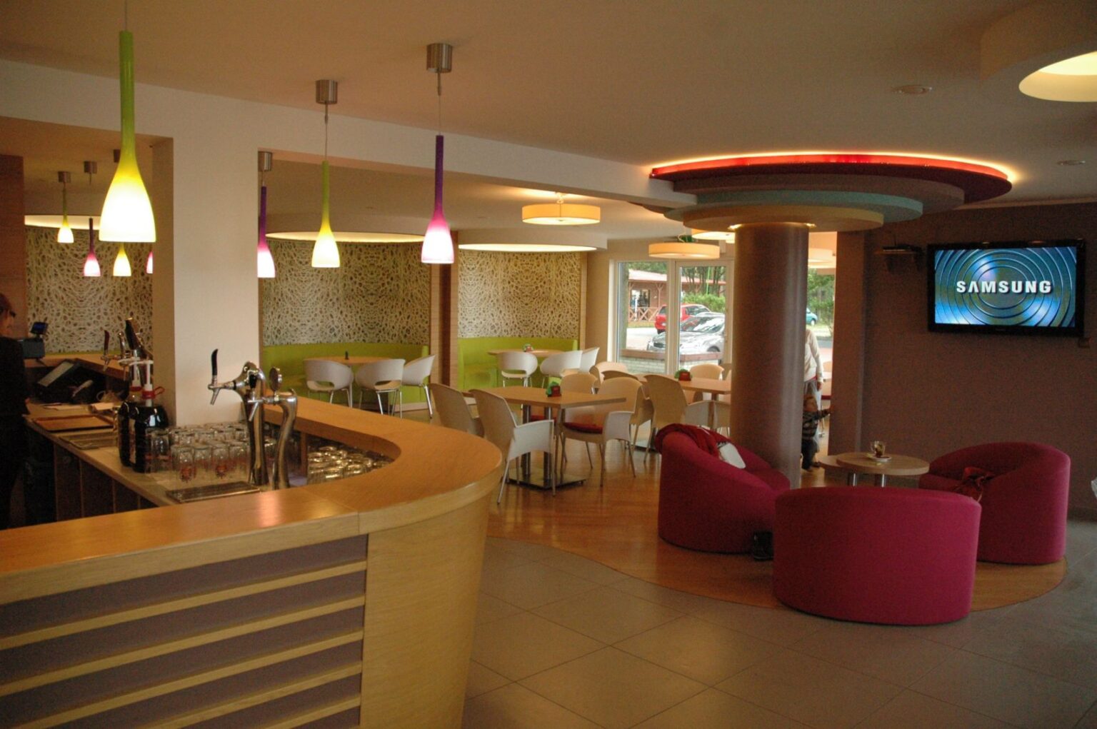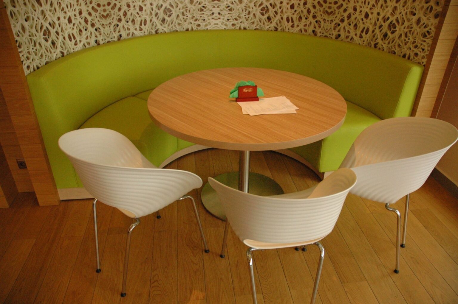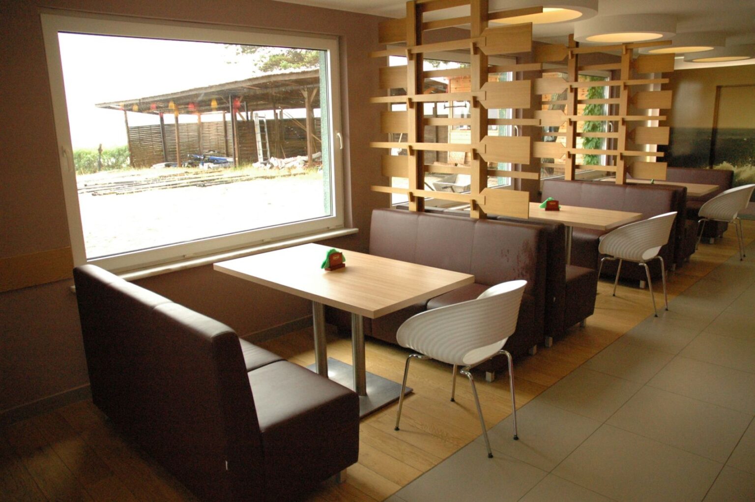 Zrealizowaliśmy kompleksowe zamówienie na meble do restauracji mieszczącej się na Kempingu Kaper. W zakres dostawy wchodziły: fotele oraz loże tapicerowane wykonane wg. indywidualnego projektu, lada barowa z litego drewna oraz laminatu, stoły na podstawach ze stali nierdzewnej z blatami z laminatu hpl z obrzeżem abs, krzesła z tworzywa sztucznego 72/Jeny-S-2081.